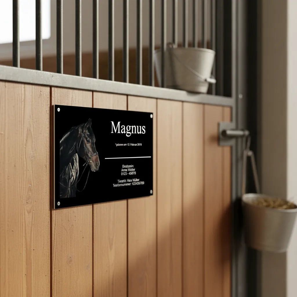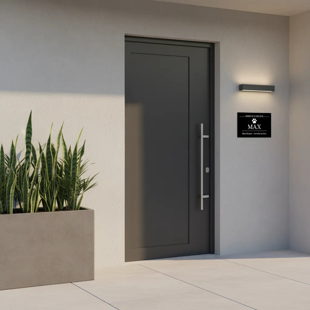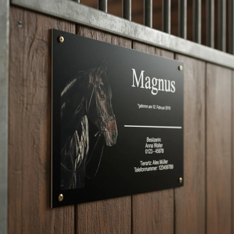Name, Rasse und Design frei kombinierbar – jedes Schild wird individuell gefertigt.
